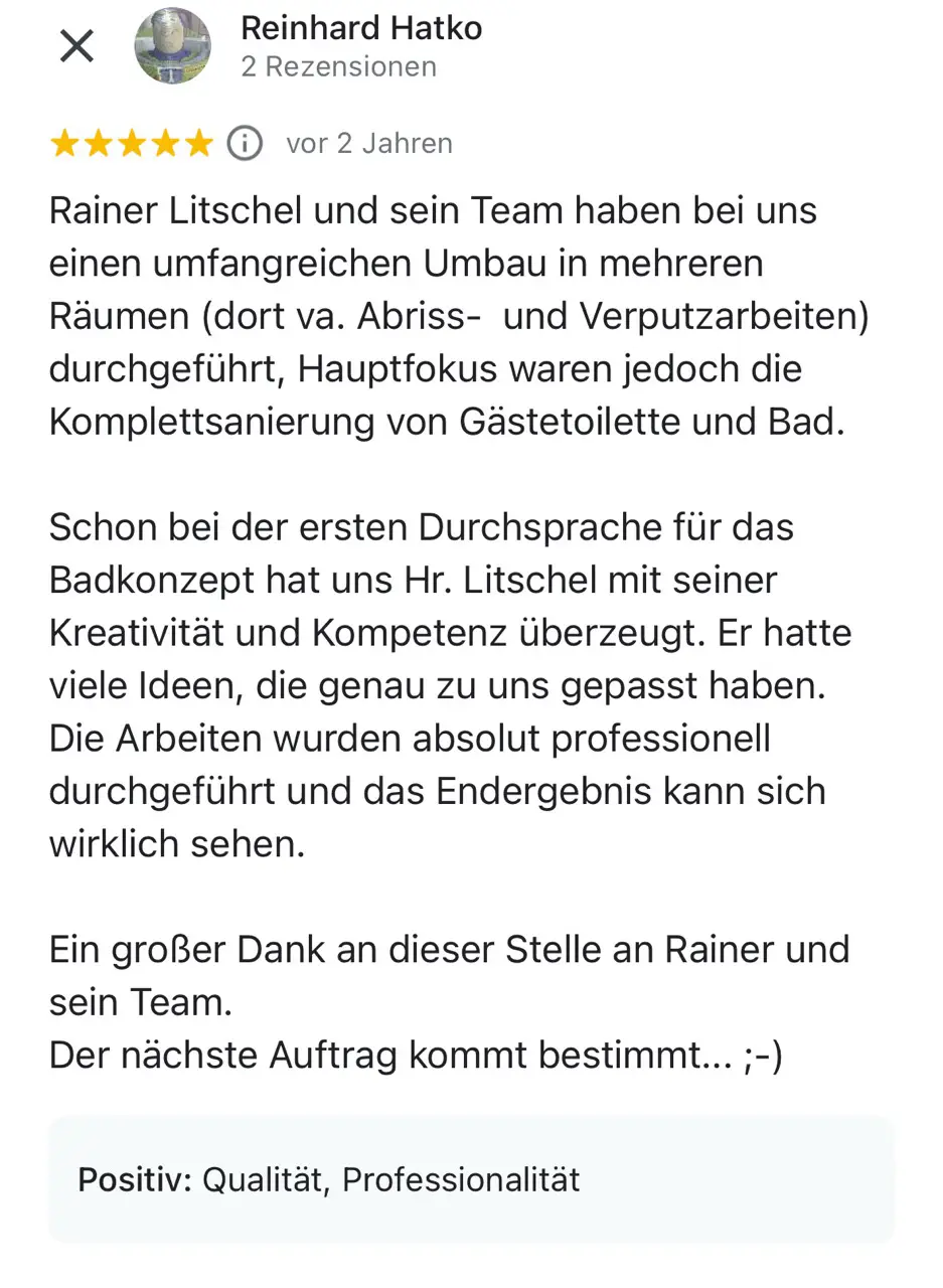 Um Ihnen ein maßgeschneidertes und verlässliches Angebot erstellen zu können, benötigen wir die Aufmaße zu Ihrem aktuellen Bad, Ihren genauen Standort und Ihre individuellen Wünsche.